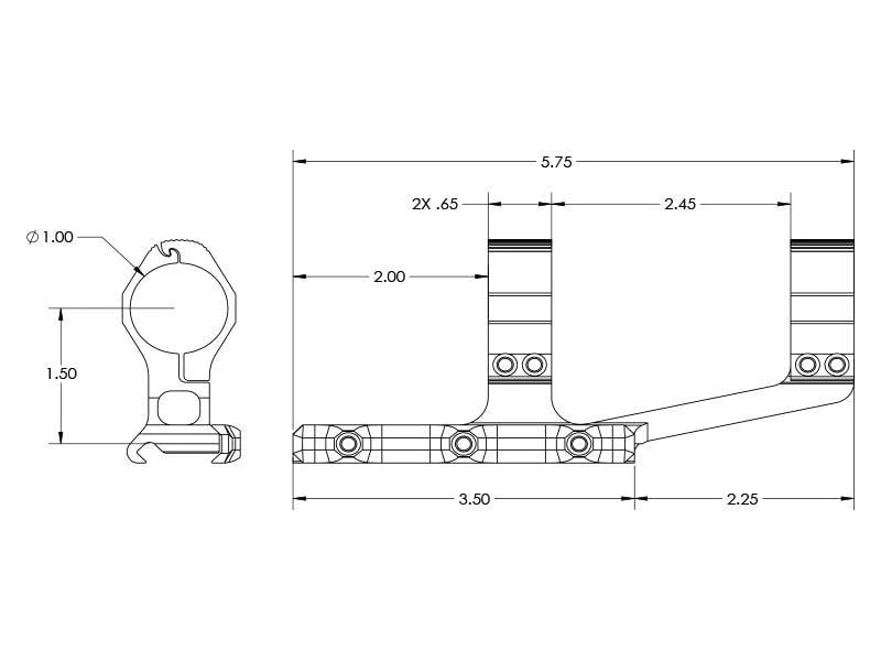 Our Ultralight 1″ SPR Scope Mount features a rear ring